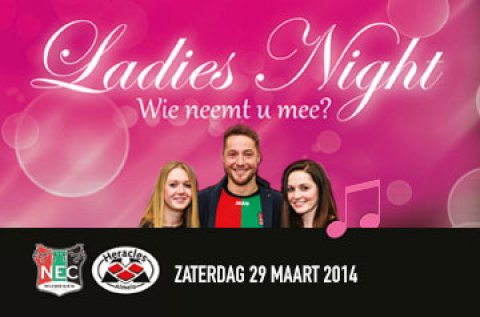 Voor alle vrouwelijke supporters is vanwege de 'Ladies Night' een speciale kaartverkoopactie. Vrouwen kunnen met 50% korting een ticket kopen voor de wedstrijd N.E.C. - Heracles Almelo. Deze actie is geldig voor alle tribunes en de kaartjes kunnen gekocht worden bij de receptie van het stadion. De receptie is geopend op doordeweekse dagen tussen 09.00 uur en 17.00 uur.