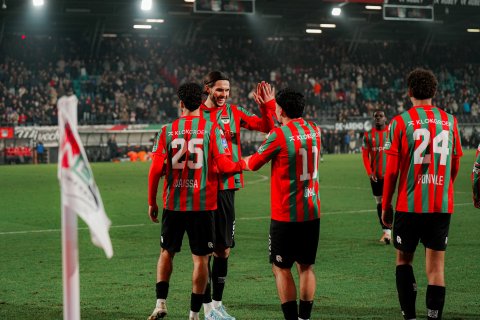Na een mooie combinatie tussen Brayann Pereira en Sami Ouaissa veerde het publiek op. De Nijmeegse aanhang zag ook dat N.E.C. het lastig had en schreeuwde het elftal vooruit. Dat leverde na tien minuten in de tweede helft een mogelijkheid op voor Kodai Sano. Een één-tweetje van de Japanner met landgenoot Koki Ogawa bracht hem in kansrijke positie, maar zijn schot hobbelde naast.