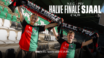 Scoor nu deze unieke bekersjaal in de N.E.C. Fanshop of bij één van onze verkooppunten rondom het Goffertstadion voor slechts € 14,99.